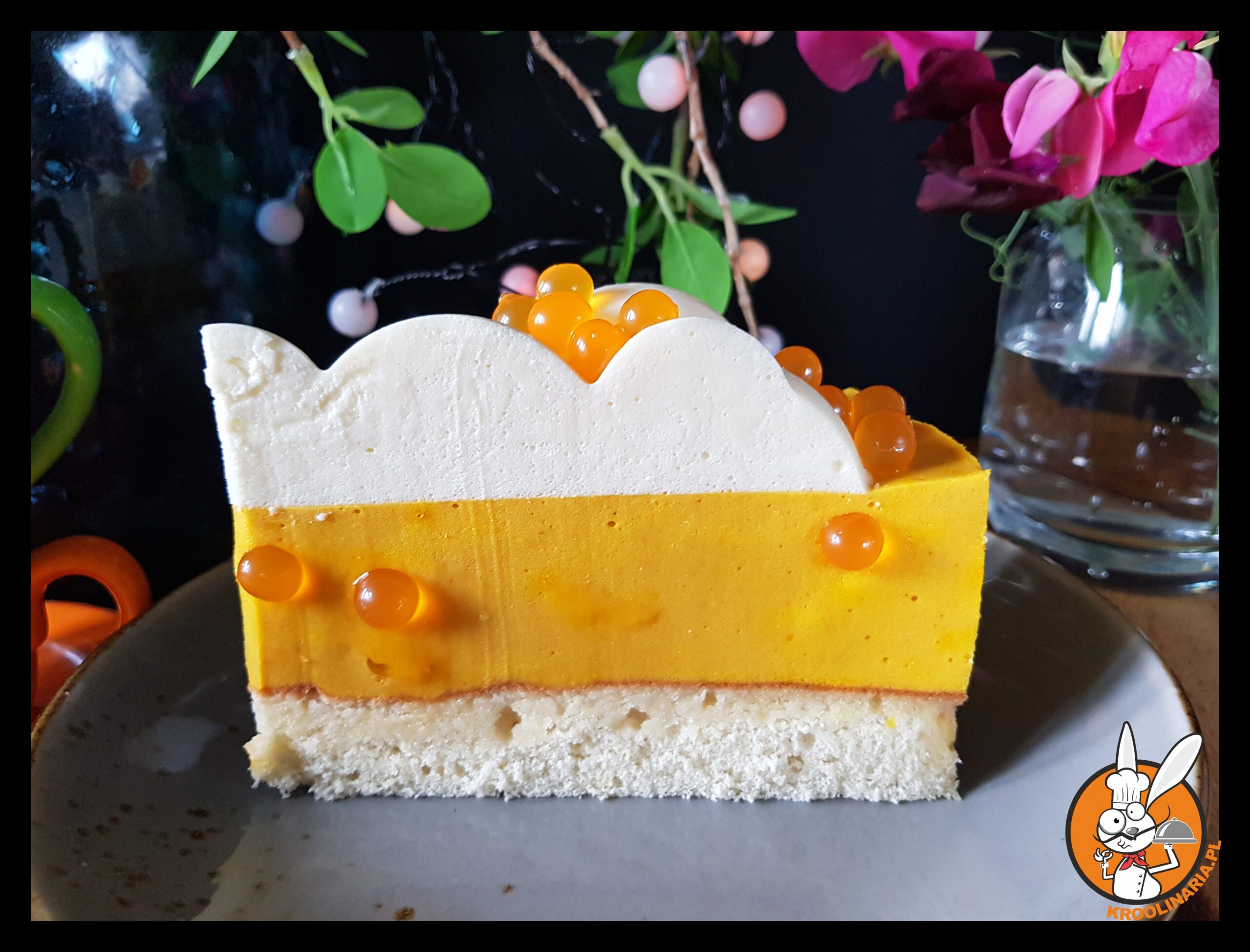 Króliś (doświadczalny) poleca: biszkopt z pianką mango i kulkami bubble tea