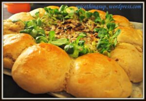 Fajna propozycja na ciasto drożdżowe. Pachnące, puszyste bułeczki drożdżowe z serowym farszem pośrodku. Trzy rodzaje sera i pieczarki. Bułeczki łatwo się odrywa i macza w
