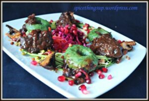 Zielone, kremowe risotto z dodatkiem szpinaku i parmezanu. Do tego delikatne policzki wieprzowe w towarzystwie zielonych warzyw. Soczewica podsmażona z pieczarkami świetnie uzupełnia smak mięsa.