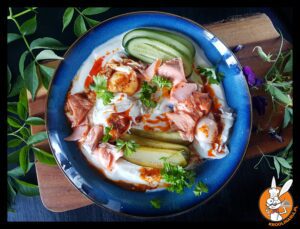 Jajka po turecku z ogórkiem małosolnym Podrzucam też przepis na https://kroolinaria.pl/salatka-z-burakiem-i-awokado/