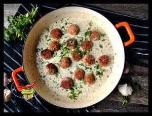 Pulpety z łososia w sosie czosnkowo pietruszkowym. Ja to z ajedzeniem ryby to na bakier, dlatego zawsze muszę tak ją sobie podac, żeby to zjeść.