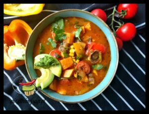 Paprykowa zupa z chorizo. Ta zupa powstała na potrzeby czyszczenia lodówki. W garku wyladowałao wszystko, co potrzebowało już zainteresowania i zużycia. W zupie tym sposobem