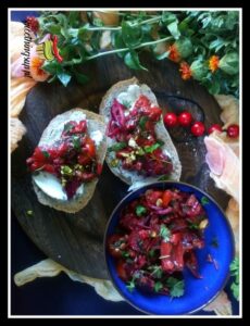 Kanapki z serkiem i sałatką z buraka. Takie kanapki to świetna propozycja na smaczne śniadanie. Świeżo pieczony chleb posmarowany kremowym, białym serkiem i obłędna sałatka z buraka, pieczonej papryki, pomidorków koktajlowych, suszonych pomidorów, granatu i czerwonej cebuli. Wszystkie smaki fajnie się łączą i dają niezłego kopa na początek dnia.