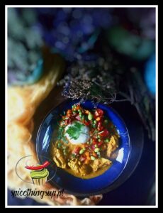 Pizza chicken korma. O Boże…jakie to było dobre!!! Chrupiące ciasto z obłędnym nadzieniem chicken korma. Nadzienie dobrze przyprawione, ostre, pełne smaków i zapachów. Pizza szybko znika i jest silnie uzależniająca.