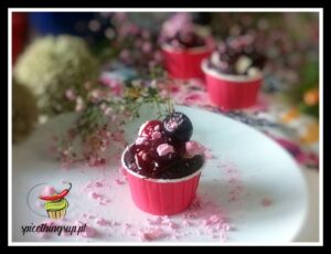 Muffinki z wiśniami. Obłędnie czekoladowe, z dodatkiem likieru Baileys. Nadziane wiśniami. Wilgotne i bardzo uzależniające. Wykończone serkiem mascarpone i wiśniami w gęstym, owocowym sosie. Dodatkowym ich atutem jest wygląd.