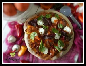 Pizza z sosem dyniowym i łososiem. Nie wiem, czy ktoś już taki sos na pizzę stosował, bo nie sprawdzałam. Jak znam życie, to pewnie takie połączenie już istnieje, bo czasem mam wrażenie, że wszystko już wymyślono. Niemniej nie szukałam, nie patrzyłam, tylko tak sobie wymyśliłam. Jak sobie wymyśliłam, tak też postanowiłam zrobić. I oto mamy pizzę z kremowym sosem dyniowym, papryką, charakternym kozim serem i wędzonym łososiem.