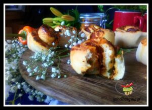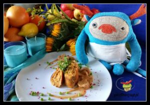 Gołąbki w sosie paprykowym. Mięsne nadzienie z dodatkiem papryki zamknięte w liściach włoskiej kapusty. Całość podana z mocno paprykowym sosem. Już dawno nie jadłam tak dobrych gołąbków.