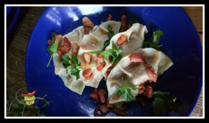 Pierogi z pastą z kurczaka. Jakis czas temu robiłam pastę z kurczaka. Oczywiście musiałam zrobic dla całej armii, jakżeby inaczej 😉 Nadmiar postanowiłam wykorzystać do