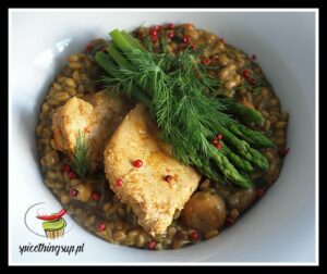 Grzybowe kaszotto z wieprzowiną. Bardzo mocno grzybowe kaszotto. Kremowe, gęste i nie skłamię jeśli powiem, że najlepsze, jakie do tej pory jadłam. Kaszotto wykończone serem