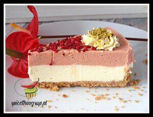 Sernik na zimno z musem rabarbarowym .Przepis na ten sernik podpatrzyłam na jednym z blogów kulinarnych. Tam, mus rabarbarowy jest w połączeniu z sernikiem nowojorskim.