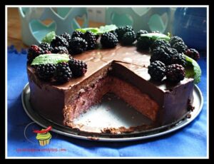 Tym razem trochę bardziej wykwintnie. Ciasto pink velvet z mocno czekoladowym musem / kremem . Mięsiste, wilgotne ciasto przełożone jeżynowym dżemem i wykończone jeżynami dla