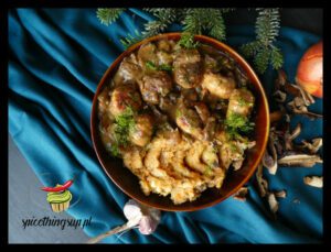 Pulpety z mięsa wieprzowego w aromatycznym sosie grzybowym. Sos powstał z połączenia suszonych i świeżych grzybów, dodatku wina i śmietanki.