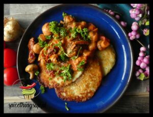 Placki ziemniaczane z sosem pieczarkowym