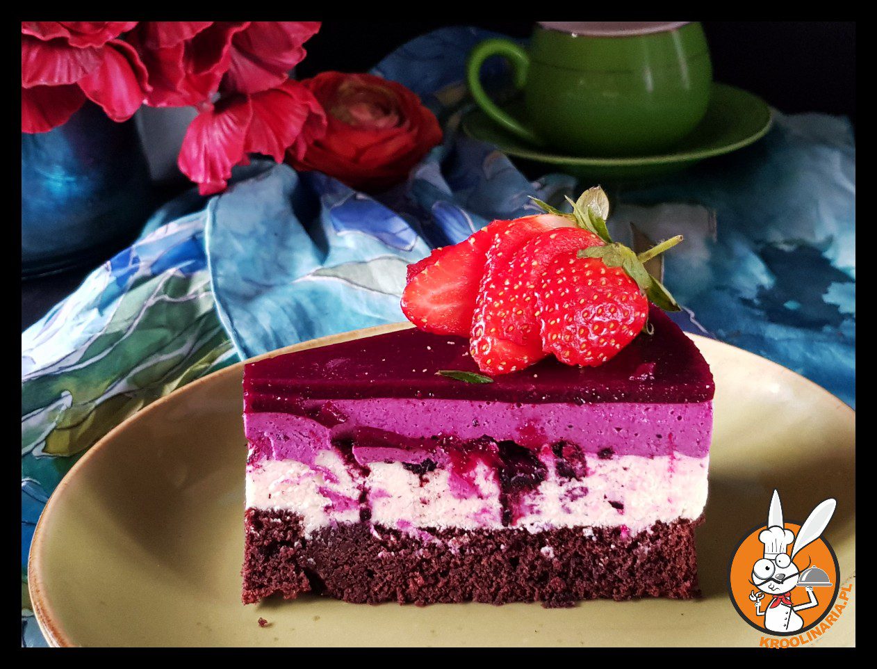 Króliś (doświadczalny) poleca: ciasto czekoladowe z musem z białej czekolady i czarnej porzeczki