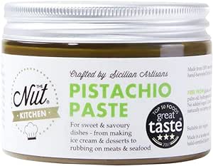 2. Na pistacjowy biszkopt wyłożyć pistacjowy krem, w nim schować malinową chrupkę.