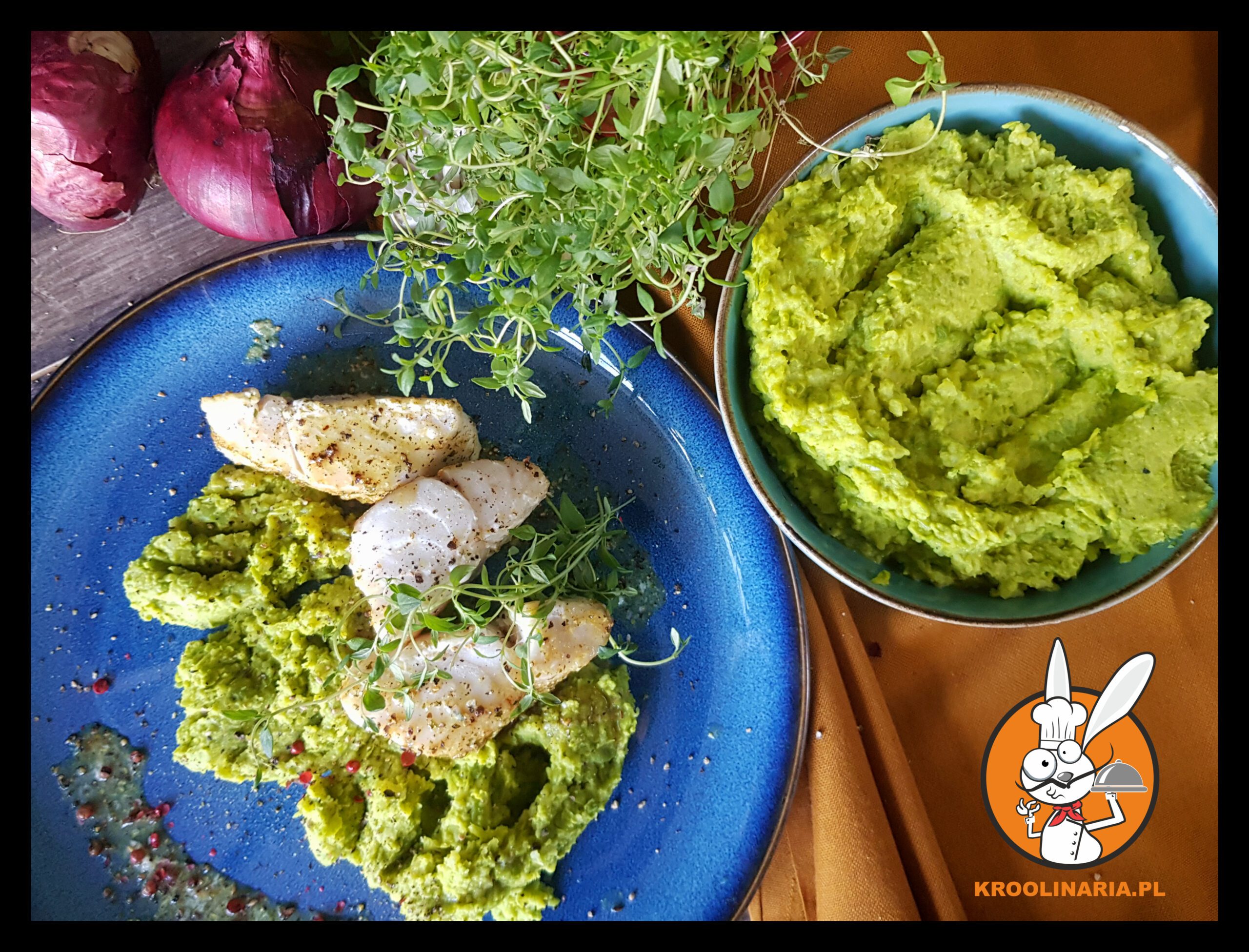 Dorsz z groszkowym puree