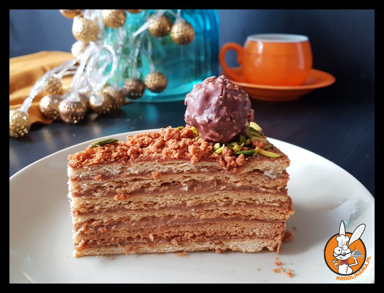 - Miód rozpuścić w garnuszku z cukrem, wymieszać. Do gorącej masy dodać mleko, rum i masło. Wszystko wymieszać do rozpuszczenia. Pod koniec dodać sodę. Odstawić do przestudzenia.Do miski wsypać mąkę. Dodać masę z garnuszka i wymieszać. Dodać jajka. Połączyć wszystkie składniki do uzyskania gładkiego ciasta. Ciasto wyłożyć na posypaną mąką stolnicę i uformować gładką kulę. Podzielić na 6 równych części.Piekarnik nagrzać do 180 stopni C .Dno tortownicy o średnicy 24 cm wyłożyć papierem do pieczenia, wypuszczając papier na zewnątrz.Każdy placek rozwałkować w okrąg o średnicy formy, podsypując w razie potrzeby mąką.W tortownicy umieścić pierwszy placek z ciasta i wstawić do piekarnika. Piec przez ok. 6 – 7 minut na delikatnie złoty kolor (nie przepiec, bo blaty za mocno stwardnieją).W osobnym rondelku podgrzać miód i wymieszać go rumem. Powstałą mikstura nasączyć każdy placek.