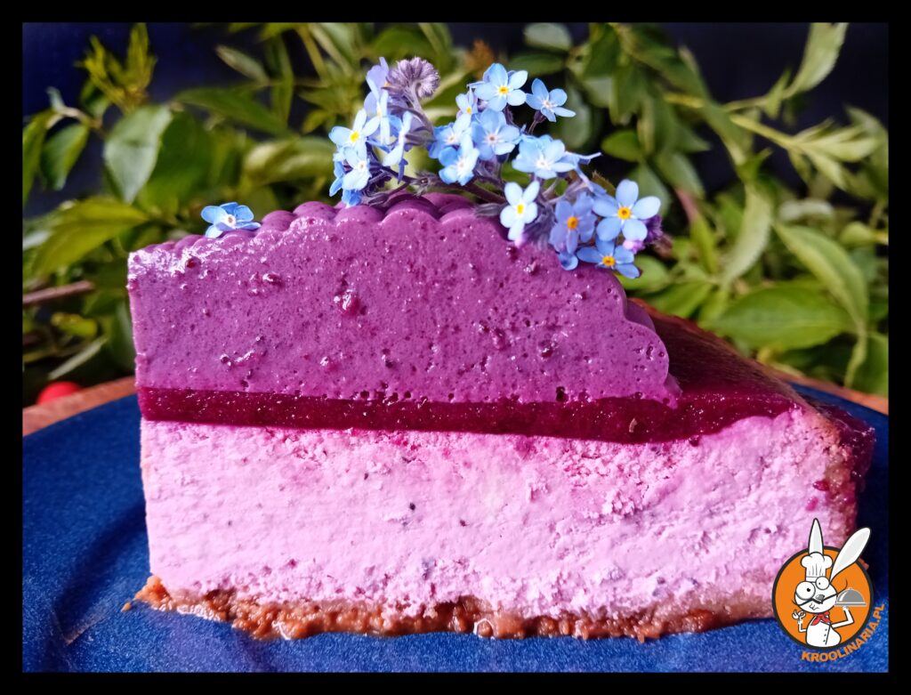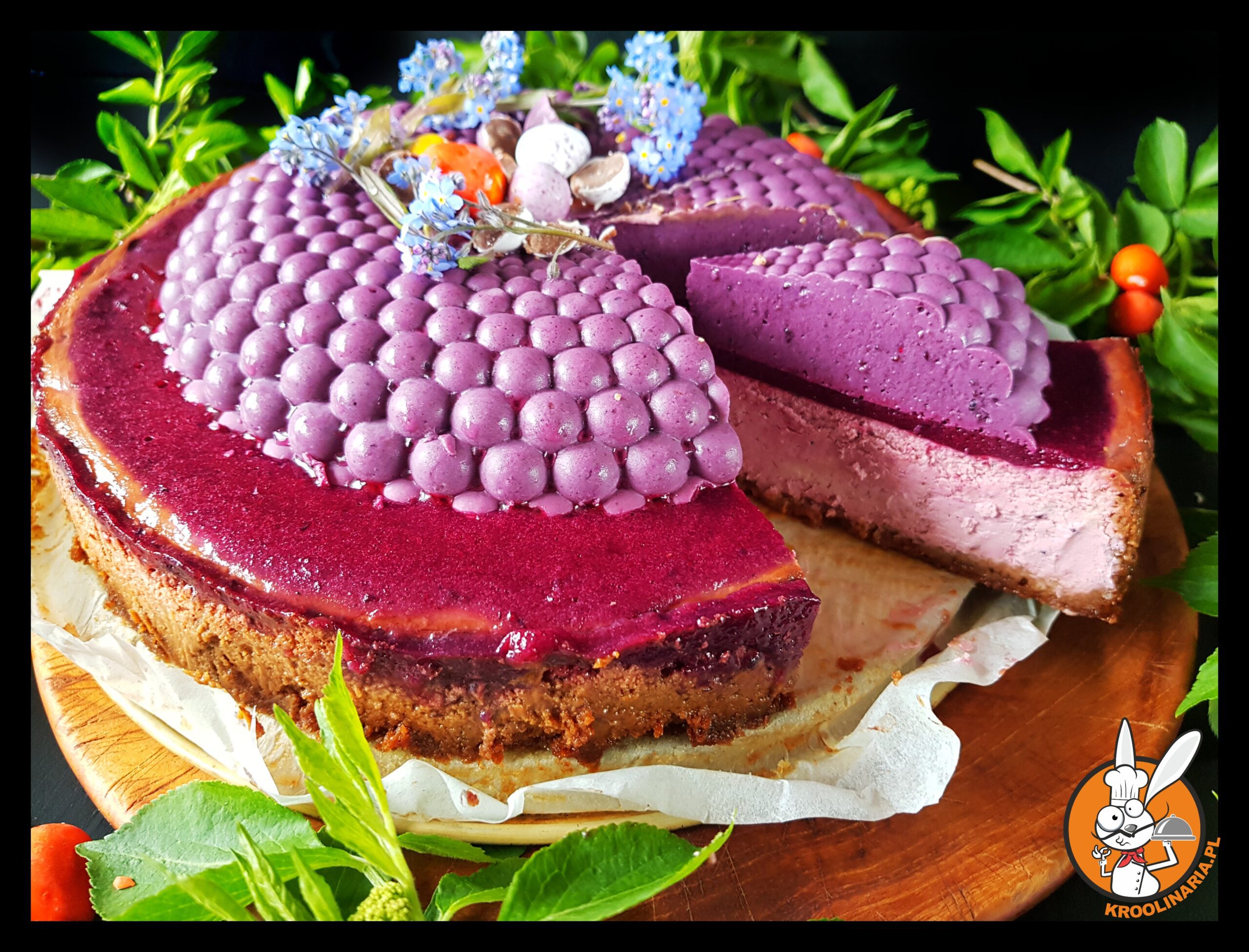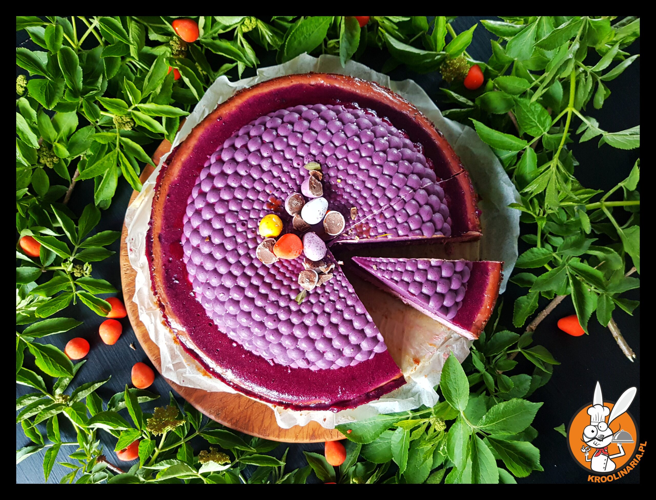 - Twaróg i ser mascarpone umieścić w dużej misce i miksować na wolnych obrotach (tak, by zbytnio nie napowietrzyć masy). Następnie do masy serowej dodawać po jednym jajku, nie przerywając miksowania. Następnie dodać szczyptę soli, cukier oraz mąka ziemniaczaną lub budyń w proszku. Pod koniec dodać puree z czarnej porzeczki. . Wymieszać do połączenia składników. Masę wylać na ciasteczkowy spód. Piekarnik nastawić na 160°C. piec przez 20 minut. Następnie zmniejszyć temperaturę do 120°C/130°C i piec kolejne 90 minut, Wystudzić w piekarniku.