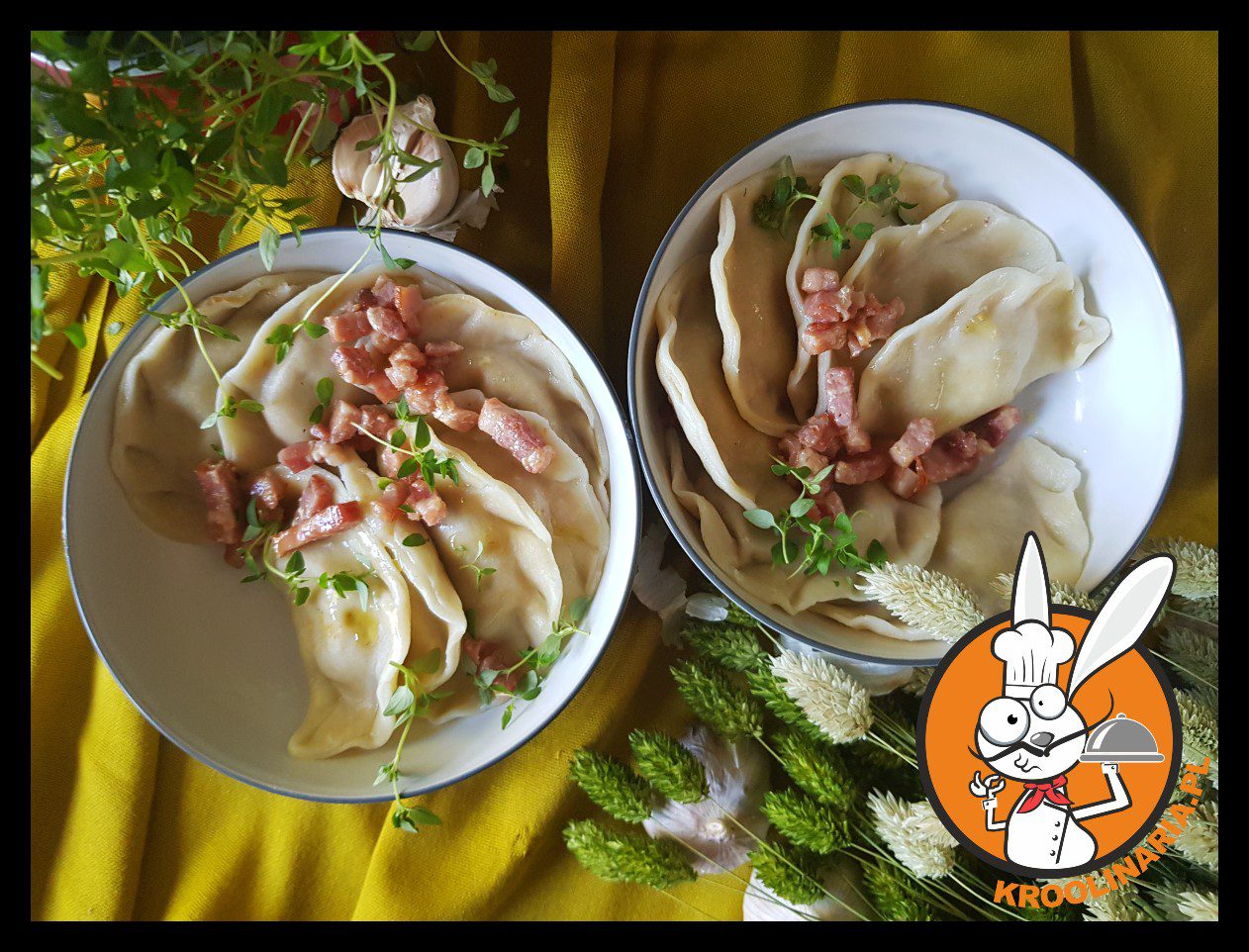 Króliś (doświadczalny) poleca pierogi z mięsem z rosołu.