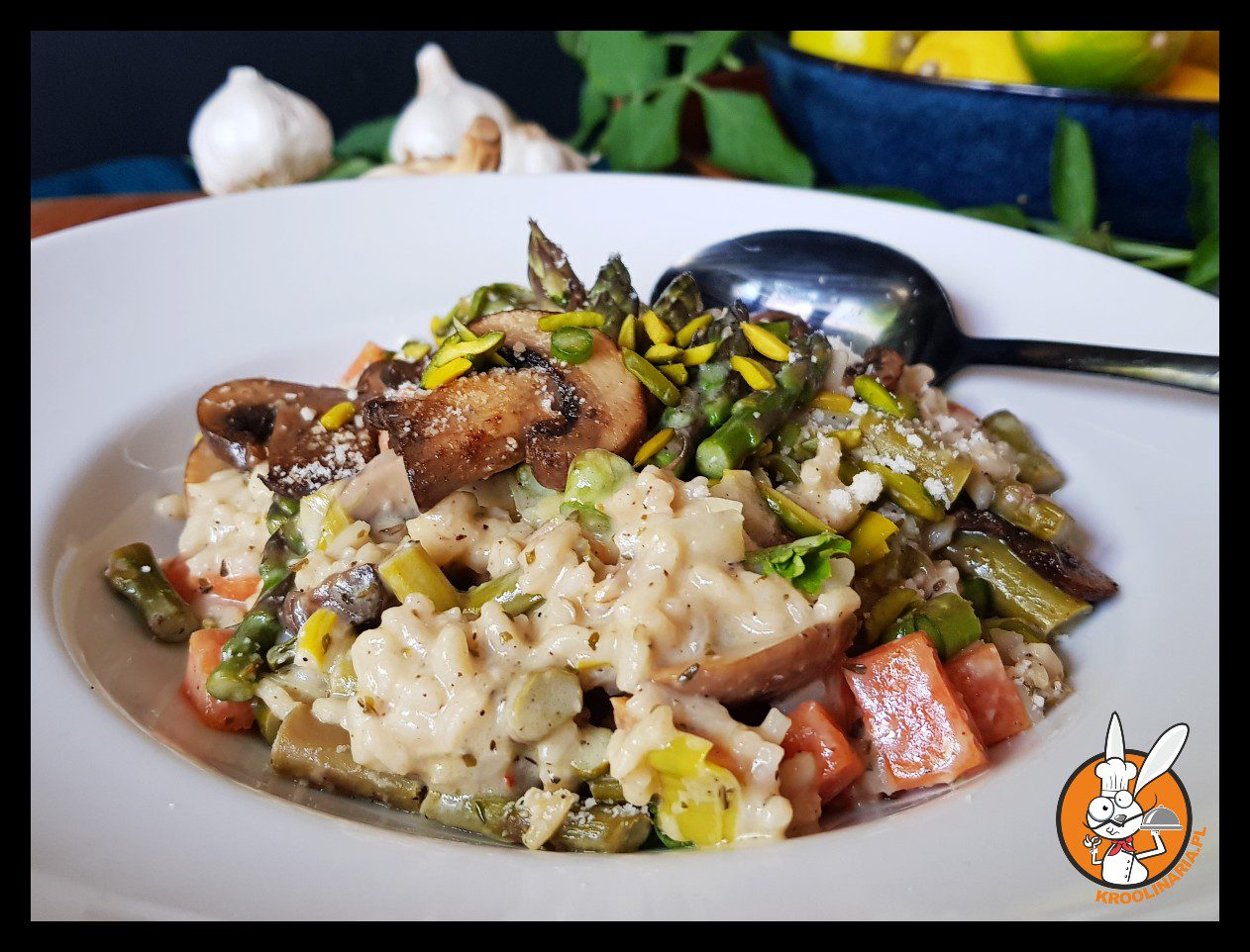 risotto z pieczarkami i szparagami