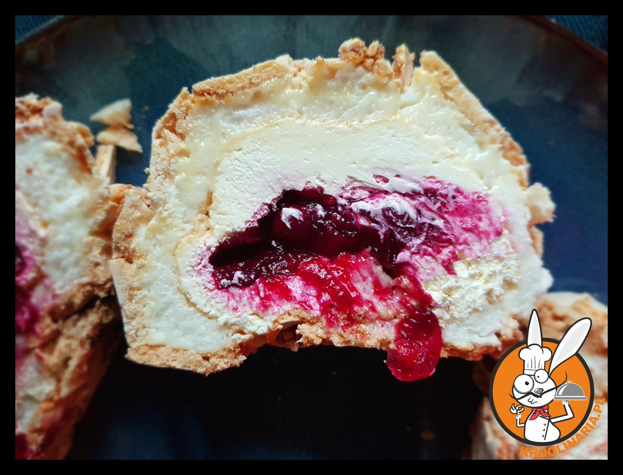 Króliś (doświadczalny) poleca: roladę bezową z bitą śmietaną z żurawiną