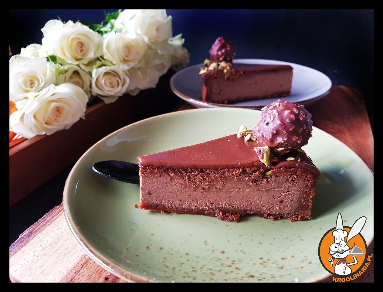 - Sernik udekorować pistacjami i ferrero rocher