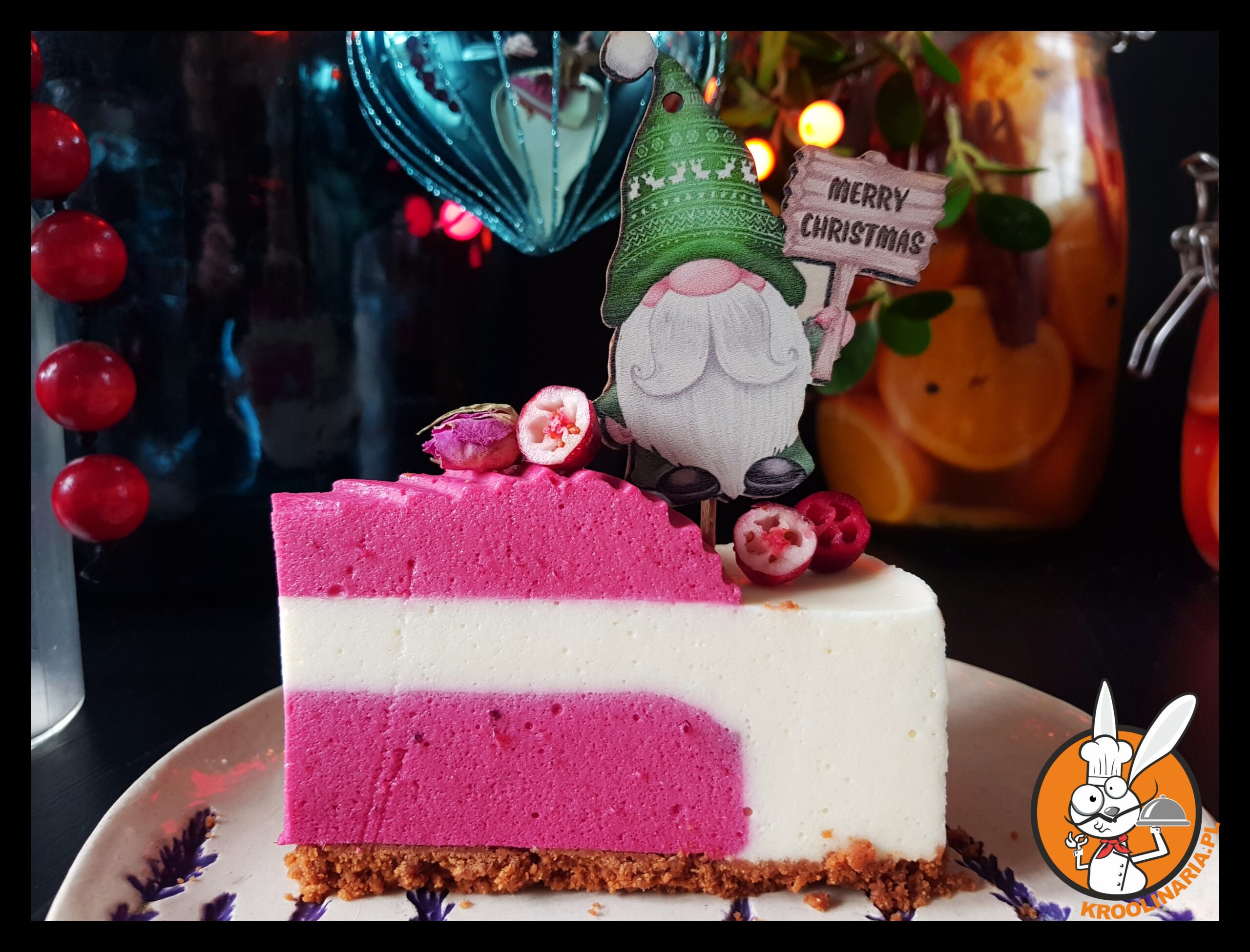 Śmietankowe ciasto z żurawinowym musem